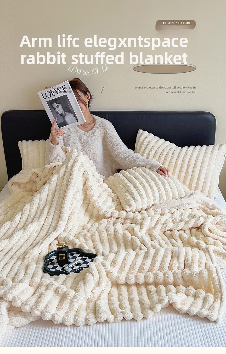 Rabbit fur fluffy blanket - multi-functional nap mat